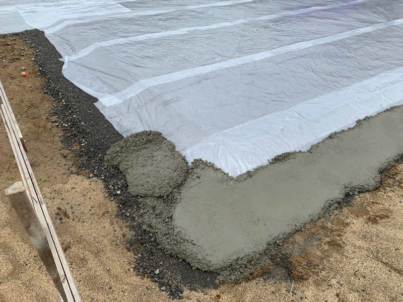 砕石を敷き土壌処理。土間シートをして、捨てコンを打ちました。