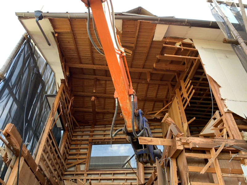 家屋解体をしてます。重機はスゴイです・・・!