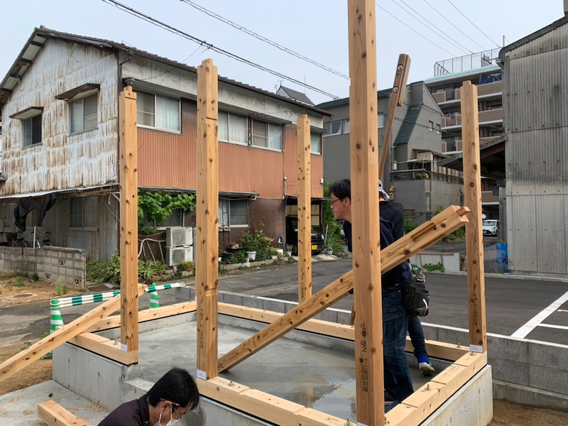 4人で1日かけて土台敷き〜建前!