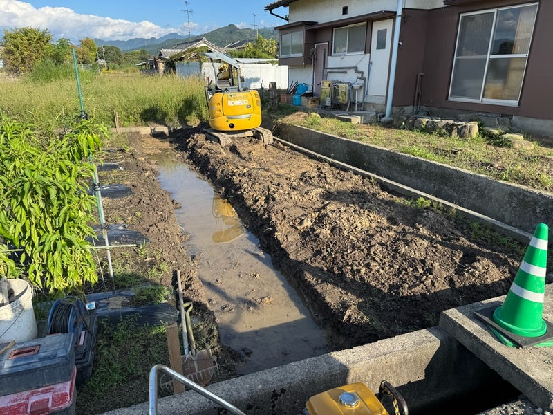 田んぼなので、簡単に擁壁作って砂利入れました。