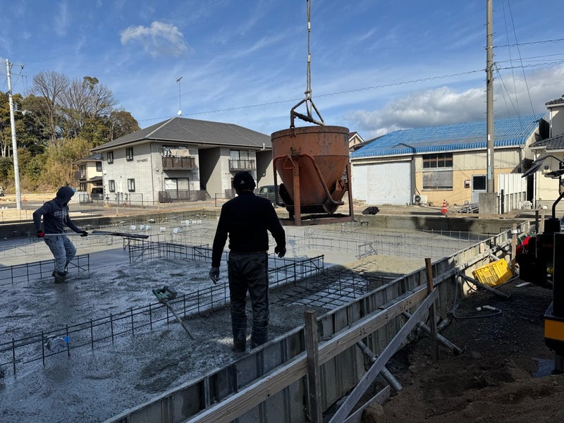 玄関内の土間コンを打設しました。