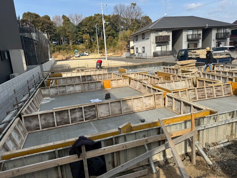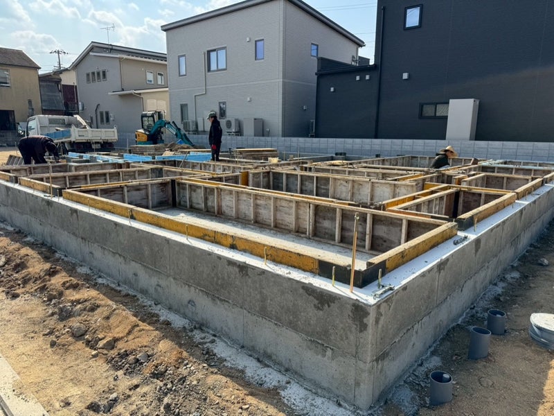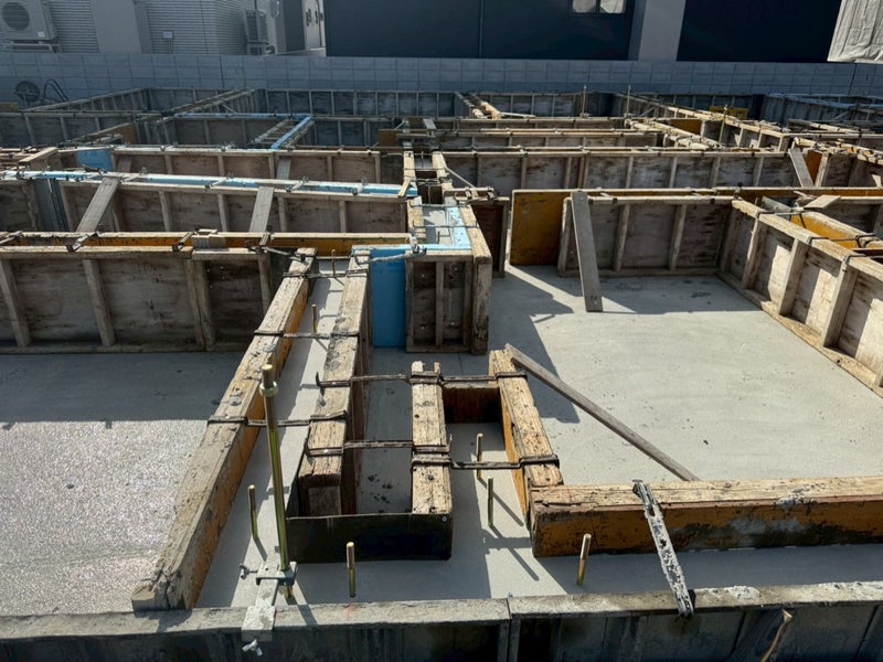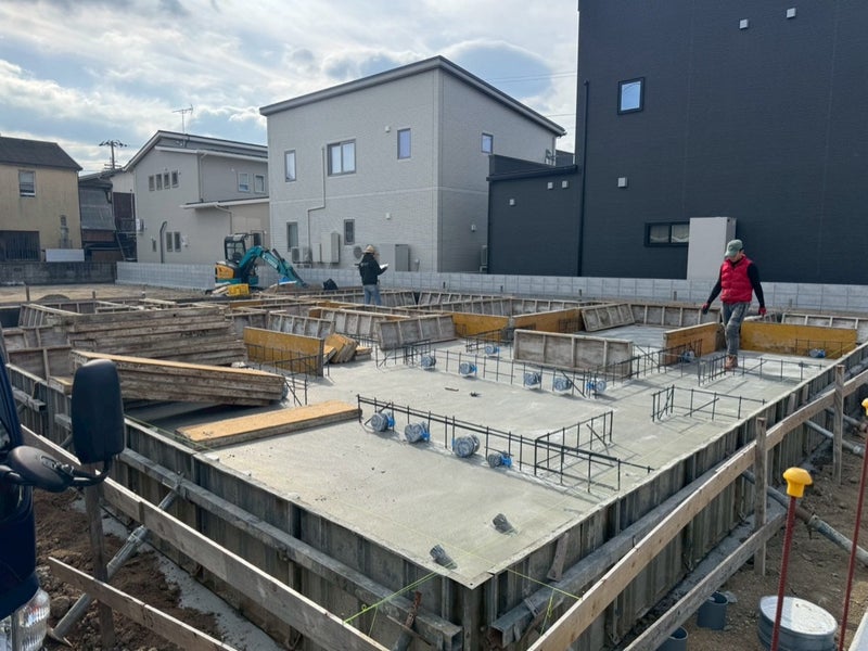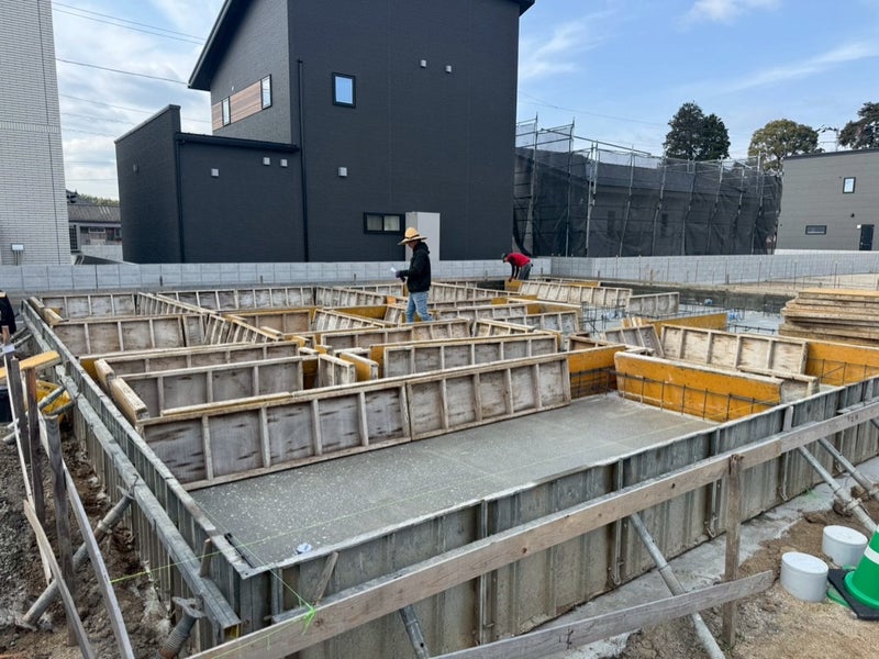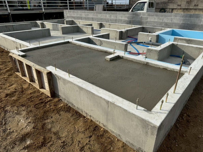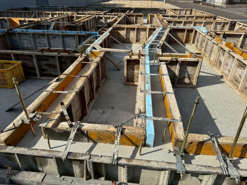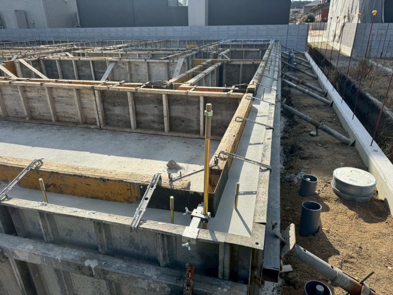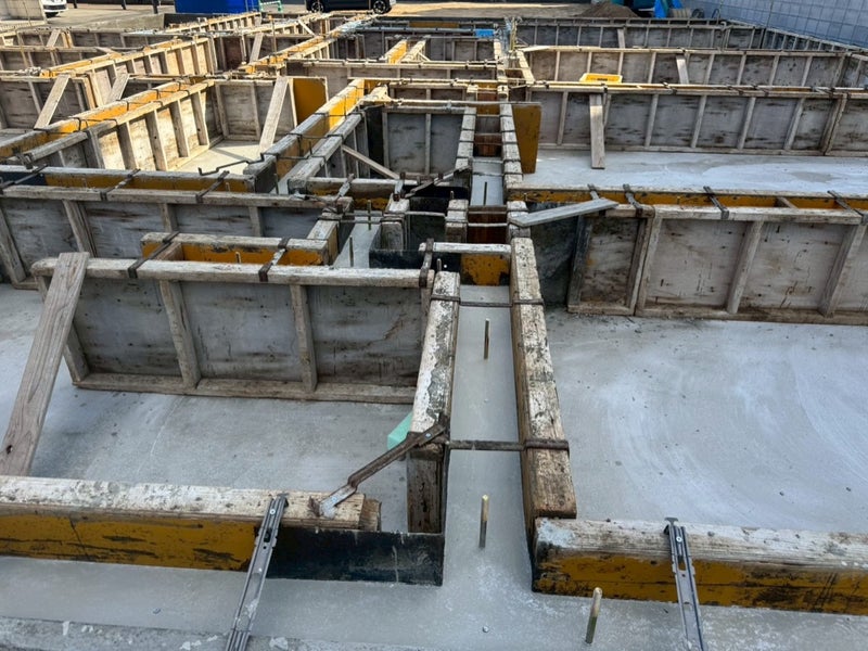 ベースコンを打設して内側の型枠を組んでます。
