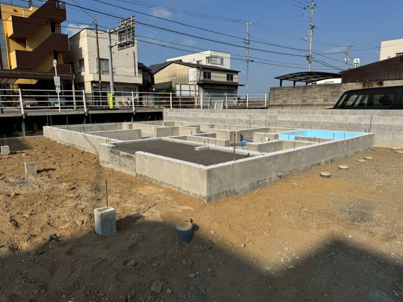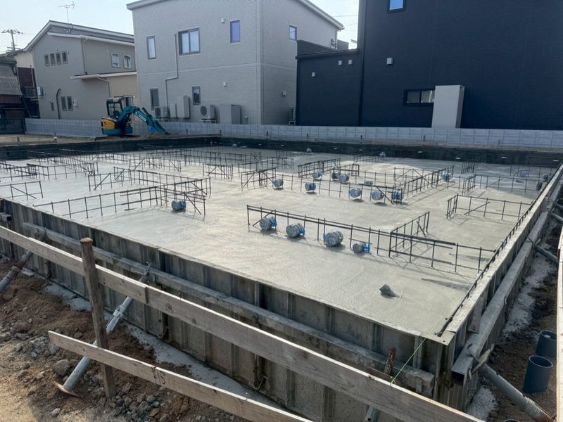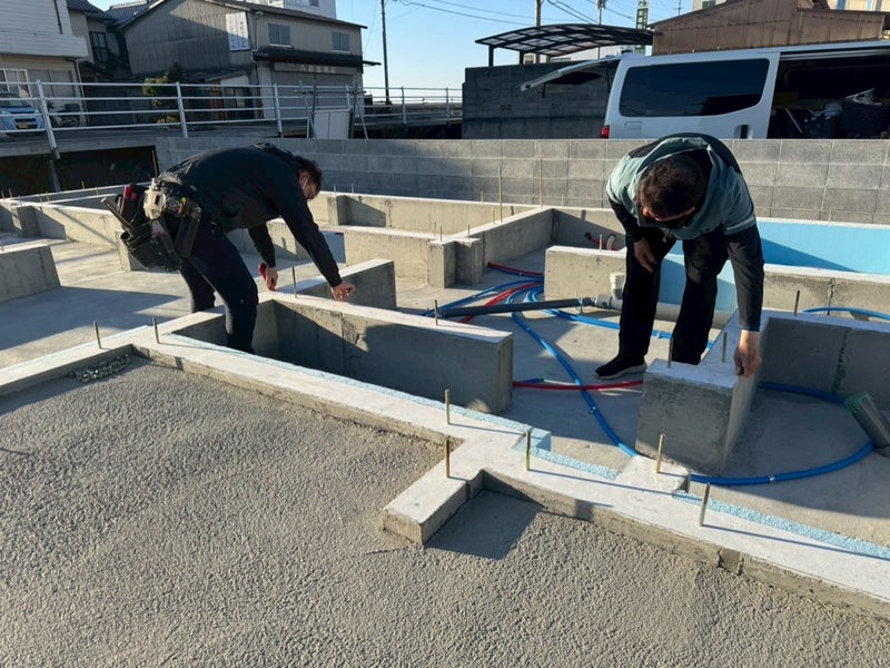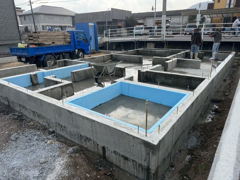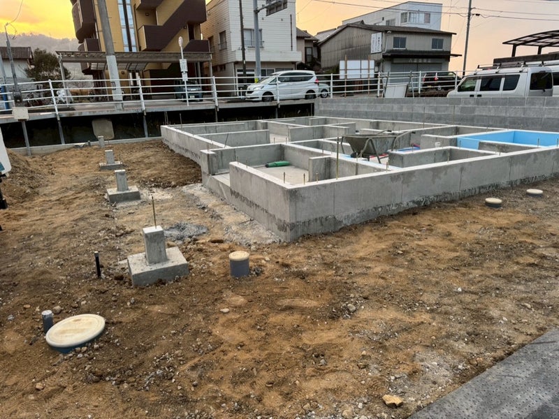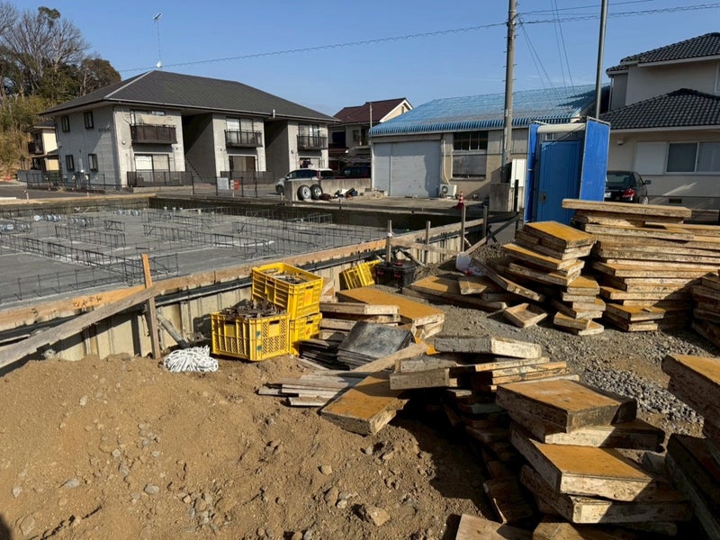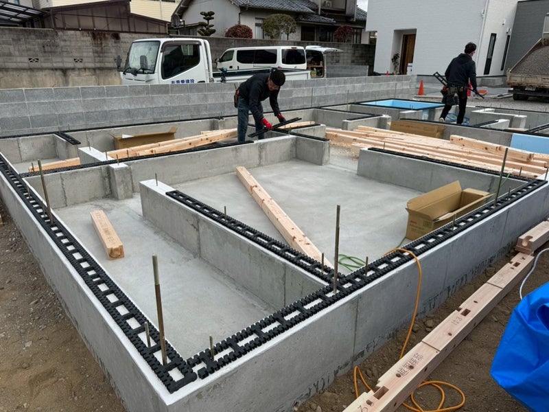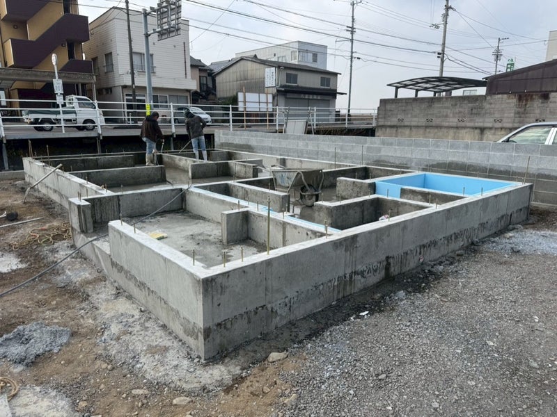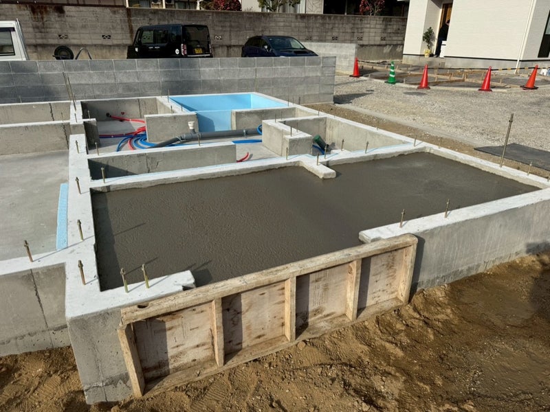 ベースコンを打設して内側の型枠を組んでます。