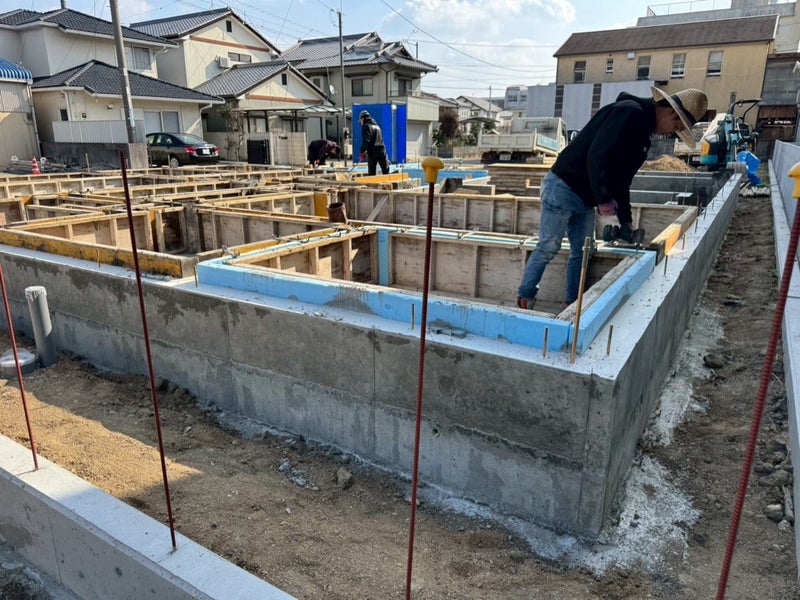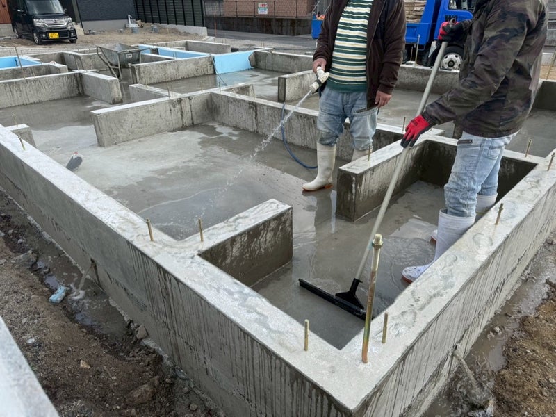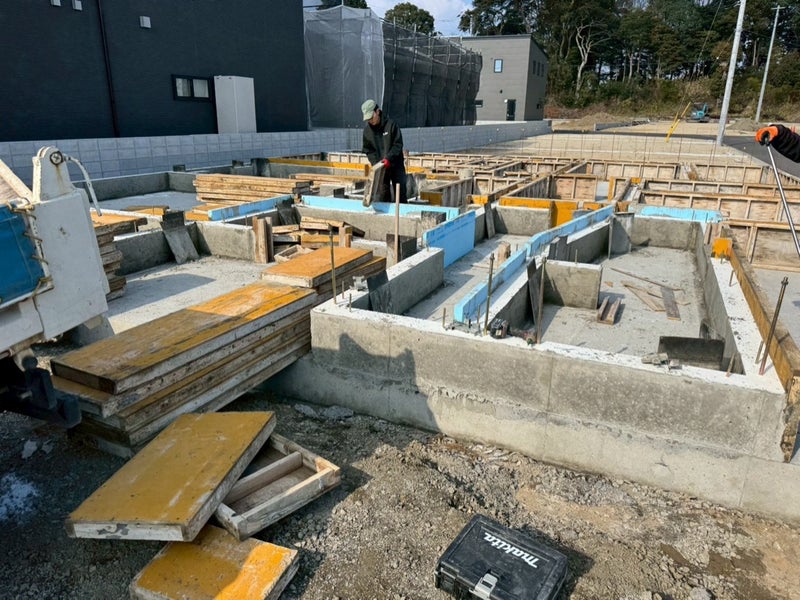 養生して型枠をバラし基礎完成!