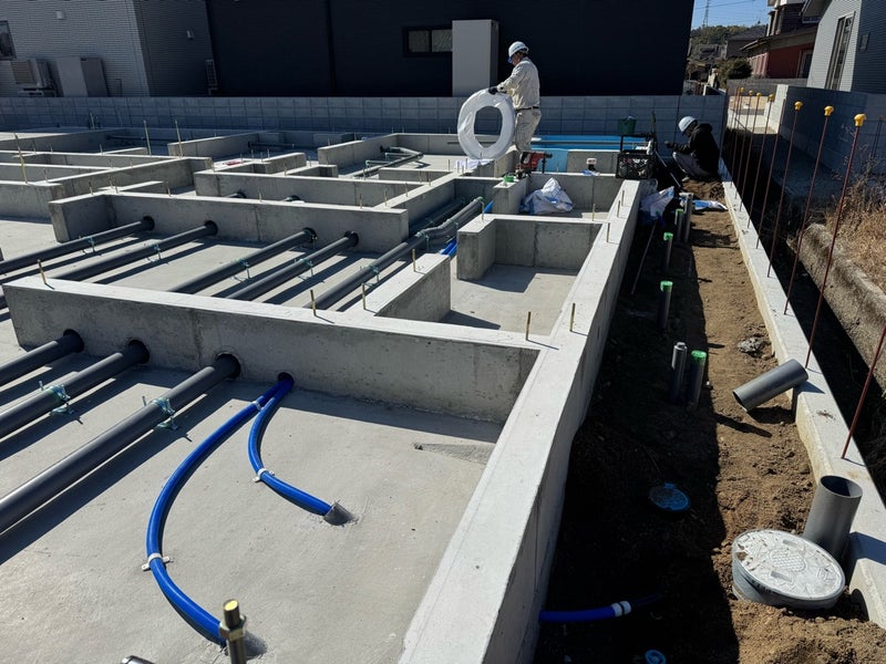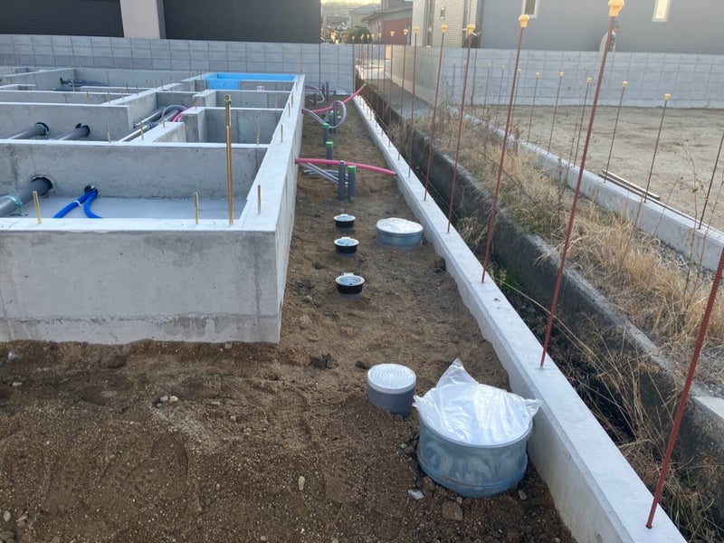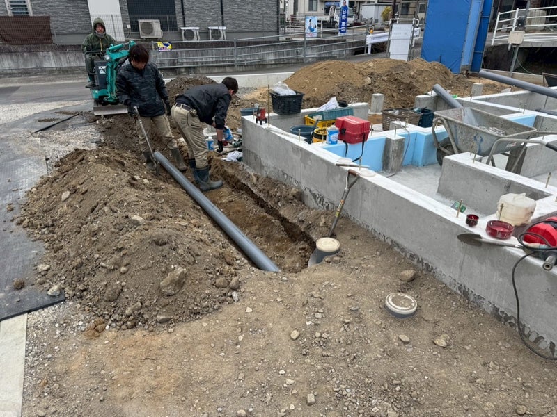 内部、外部の先行配管完了♩