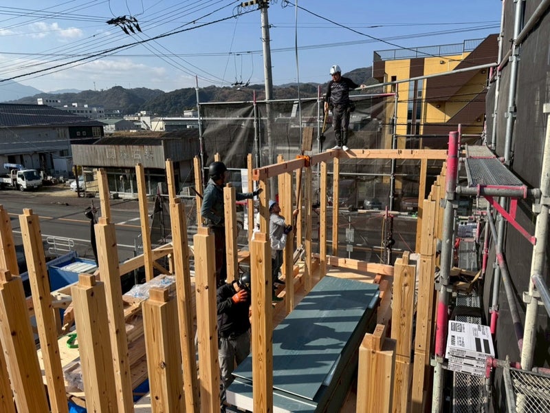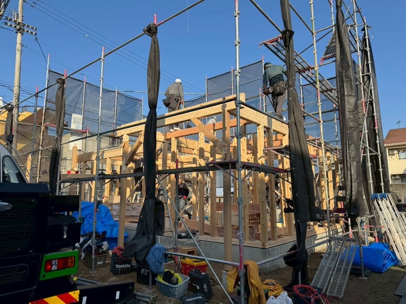 足場を組んで、建前!