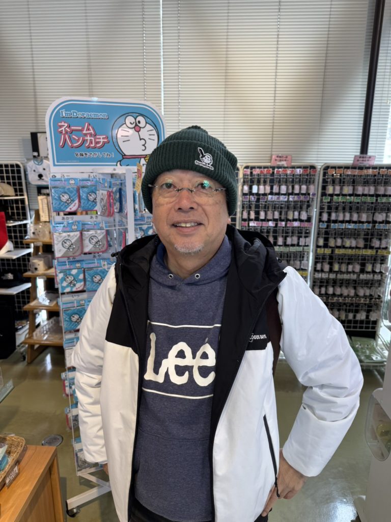 お土産に帽子を買う日野さん。