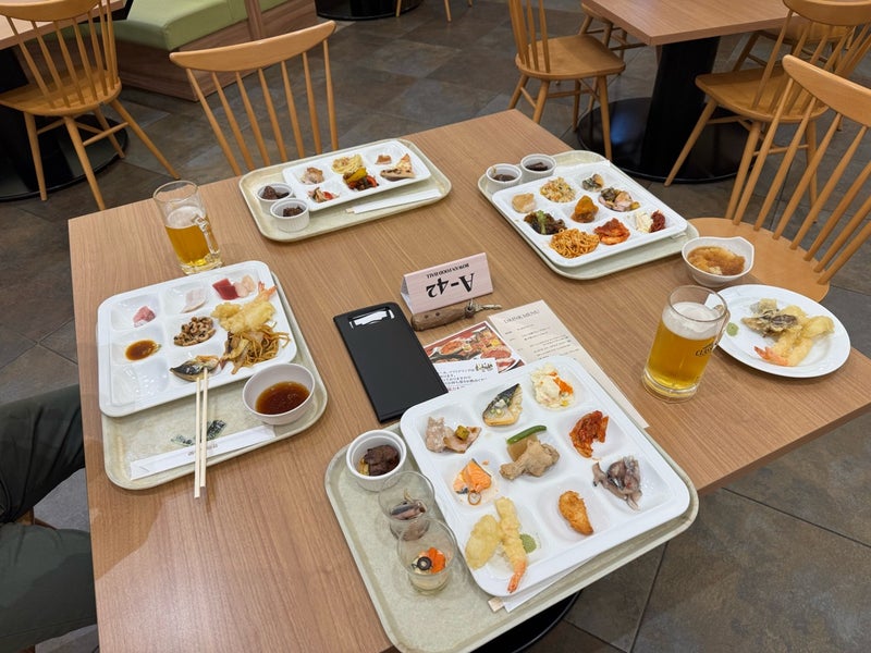 宿には海鮮丼コーナーもありましたが、飲んでいるので海鮮だけとっておつまみに・・・!